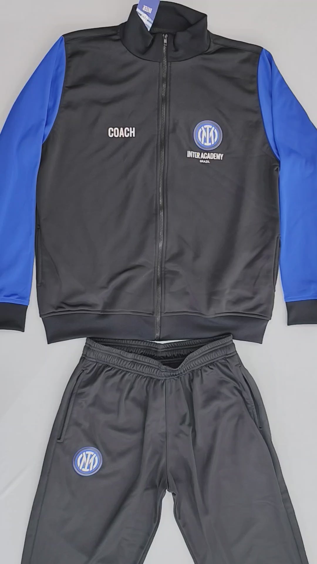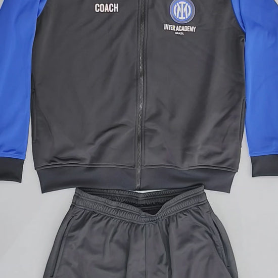 A blusa com zíper completo combina detalhes modernos, mangas contrastantes e acabamento premium, garantindo estilo e praticidade. O nome COACH, aplicado com precisão, reforça a posição do professor, enquanto o escudo oficial Inter Academy, em patch de alta qualidade, assegura autenticidade e padrão internacional.