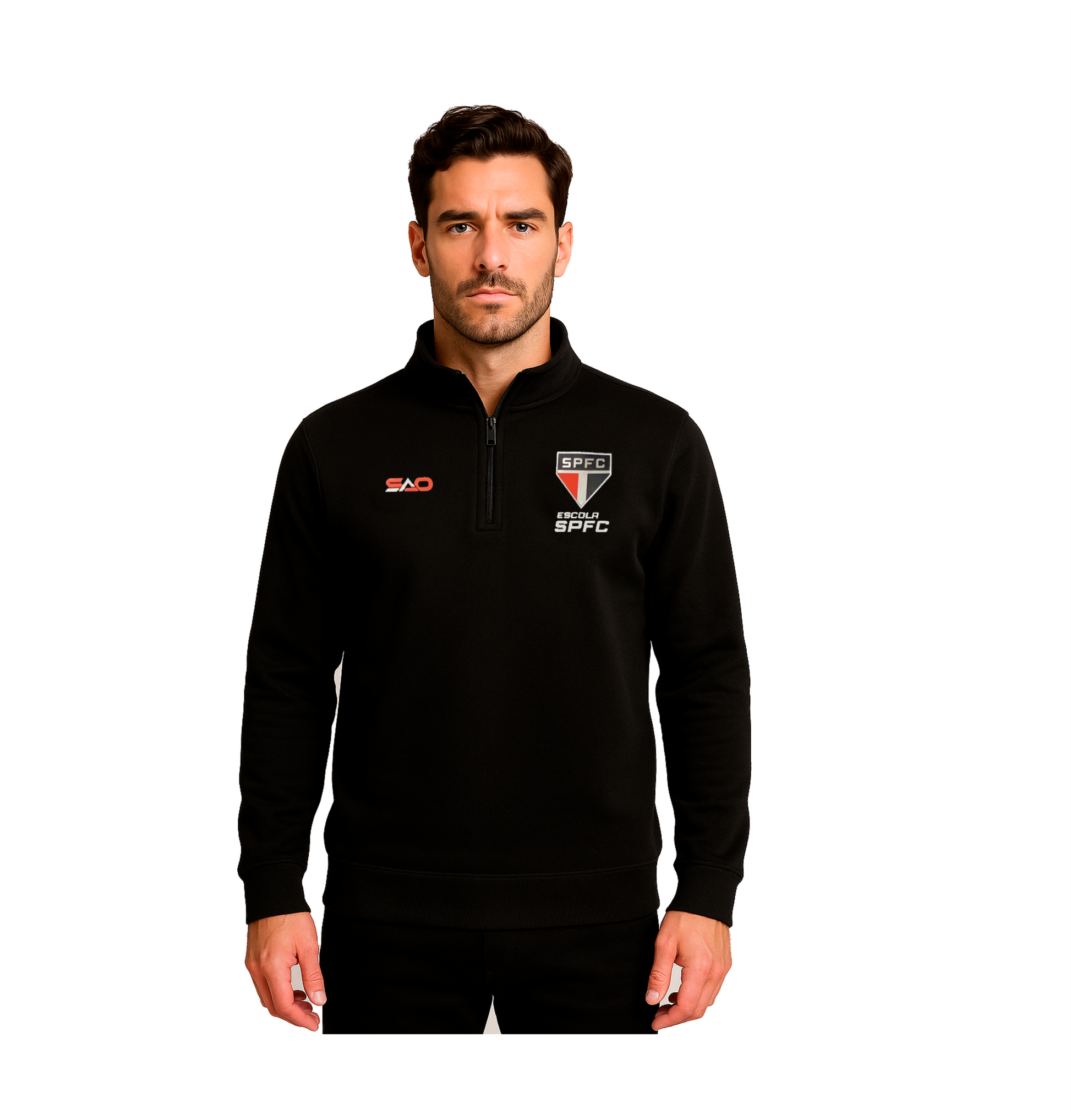 Aqueça-se com qualidade profissional usando a Blusa Meio Zíper Oficial SAO.
