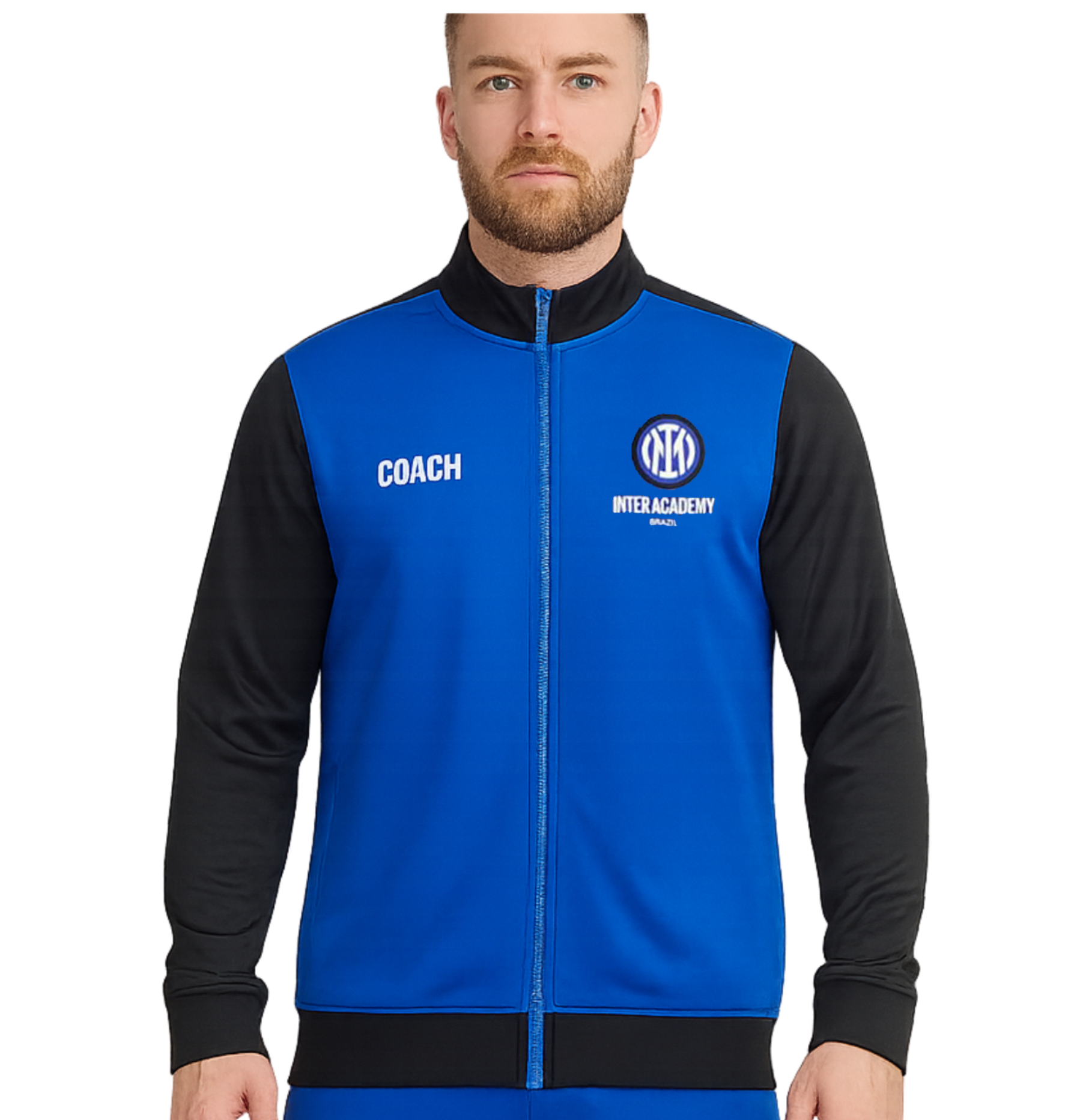 Com design moderno, mangas contrastantes e zíper completo, a peça combina funcionalidade e visual profissional. O nome COACH aplicado com precisão destaca a posição do professor, enquanto o escudo oficial Inter Academy, aplicado em patch de alta qualidade, reforça autenticidade, padrão internacional e identidade institucional.