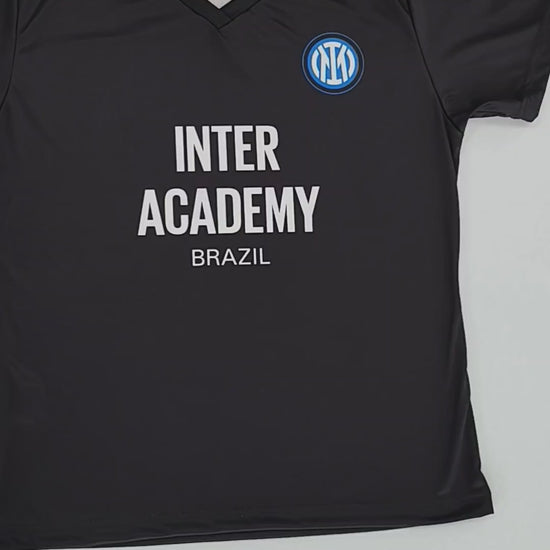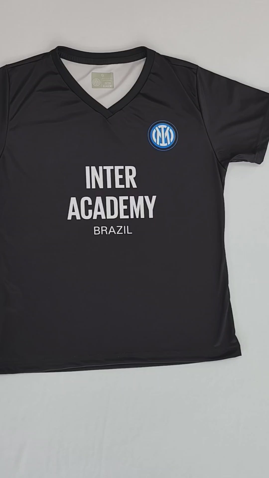 Com design moderno e elegante, o modelo conta com gola V, trazendo um visual mais casual e sofisticado. A peça exibe o escudo oficial da Inter Academy Brazil aplicado em patch premium, além da inscrição “INTER ACADEMY BRAZIL” em destaque, reforçando autenticidade e presença visual forte.